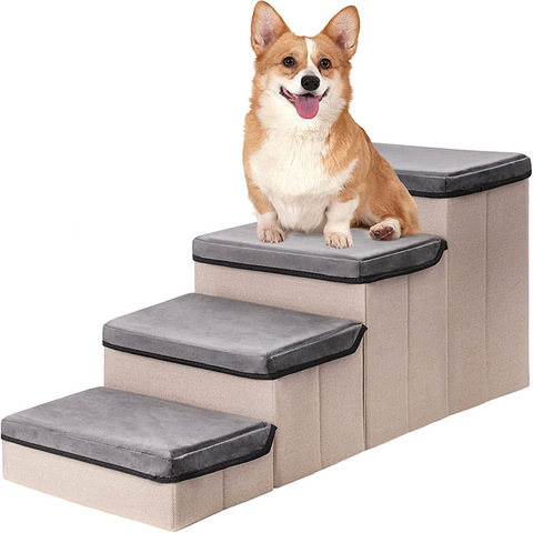 高品質のファイバーペット階段折りたたみ式犬ランプステップ収納ボックス付き3層犬階段
